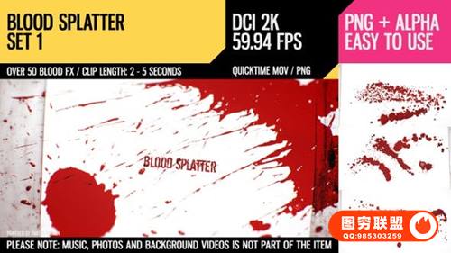 此素材含50个红色血液飞溅喷洒飙血通道视频素材,可用于电影,广告,音乐视频,视频艺术,LED屏幕,视频投影贴图的血液飞溅剪辑合成等。包含透明通道,还提供了41张血液静帧通道图片。