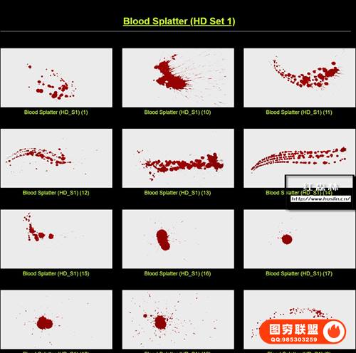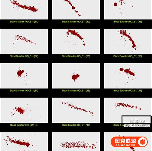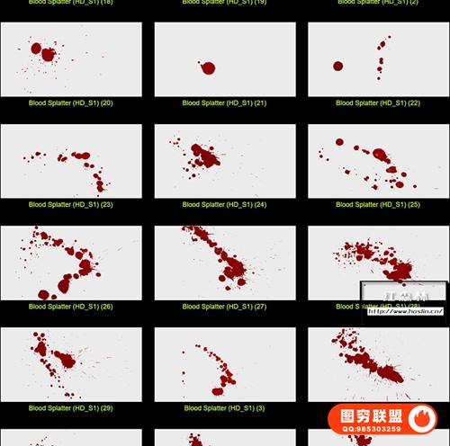 图穷联 » [视频素材]50个红色血液飞溅喷洒飙血视频素材含透明通道 Blood Splatter H