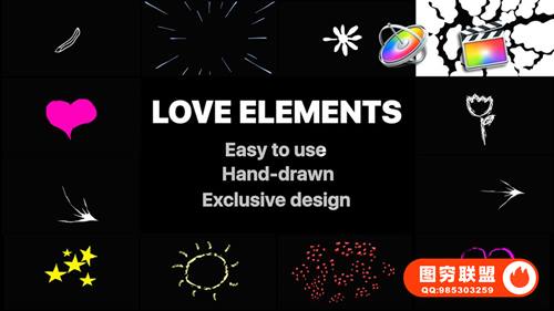 图穷联 » [FCPX插件]16种浪漫爱情手绘卡通动漫元素MG动画 Love Elements