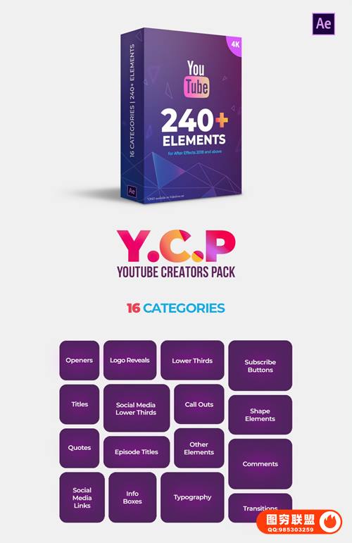 图穷联 » [AE模板]社交媒体小视频点赞订阅评论标题排版开场动画 YTB Creators Pack