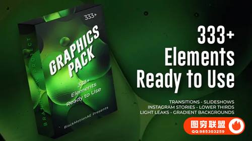 图穷联 » [AE模板]333个社交媒体字幕条标题封面设计排版转场炫光图形包 Graphics Pac