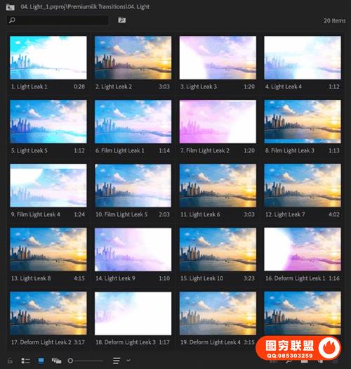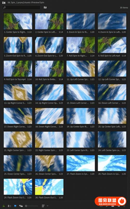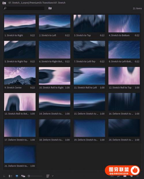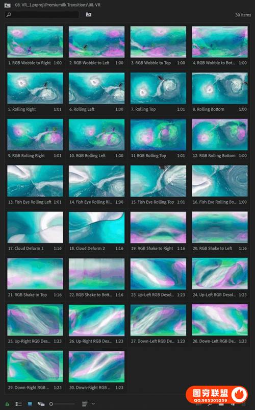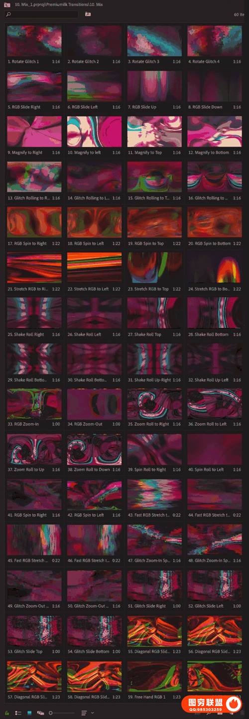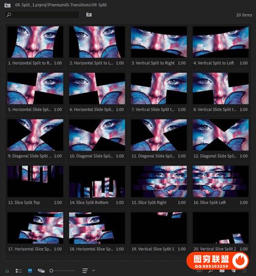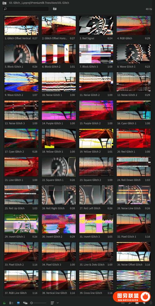 图穷联 » [PR模板]300个运动缩放故障光效移动旋转变形分割混合转场预设 The Most Use