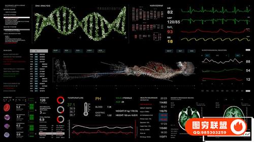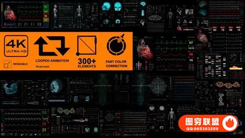 图穷联 » [AE模板]300个科技感生物医疗人物DNA超声脑电图CT神经界面元素HUD动画包 Med