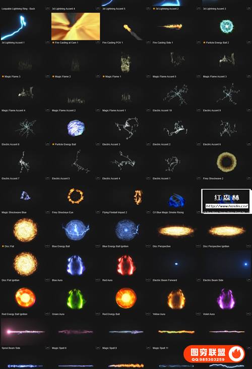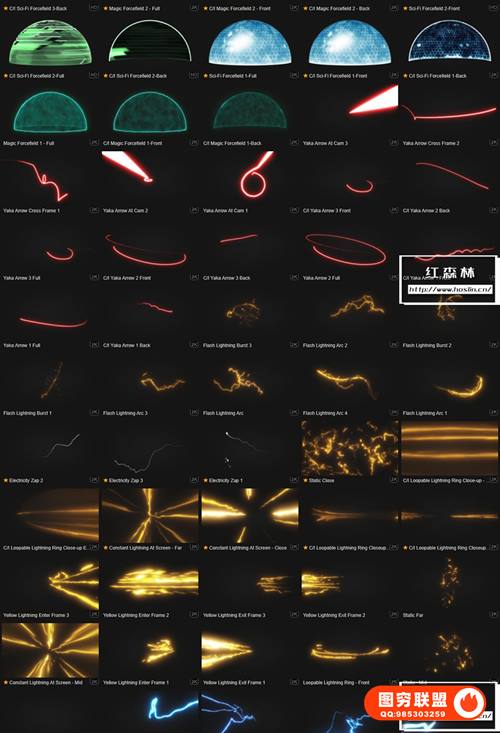 魔法力量类别相关,包含:循环的天使翅膀,地面电弧,3D闪电,魔法盾牌,金球防御魔法,复杂的魔法,魔法球,冲击波,超级闪电地面与火花,网络爆炸,魔法灵魂,飞行火球,瓦解灰尘等,为您的视频编辑,运动图像,动画和VFX合成需求。