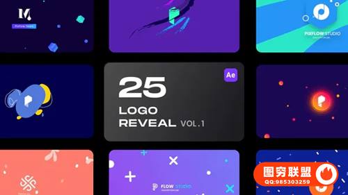 图穷联 » [AE模板]25个简约彩色图形LOGO标志展示动画 Logo Reveal Bundle