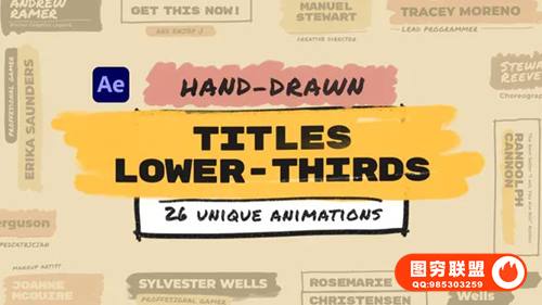 [AE模板]26个手绘画笔文字标题字幕条动画 Hand Drawn Brush Titles Lower Thirds