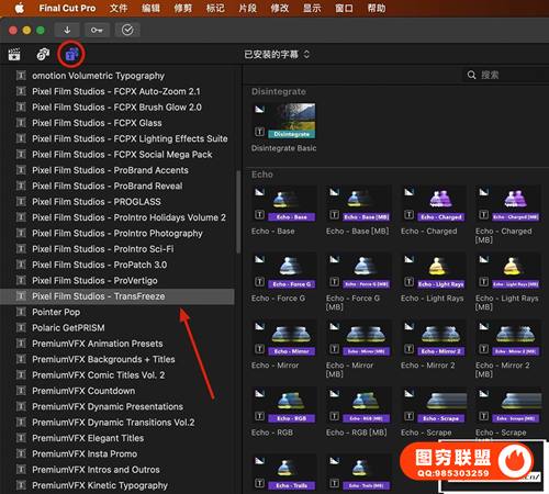 安装后,可以在 Final Cut 字幕浏览器中找到 TransFreeze 预设。特别说明:FCPX 10.6 暂不支持。