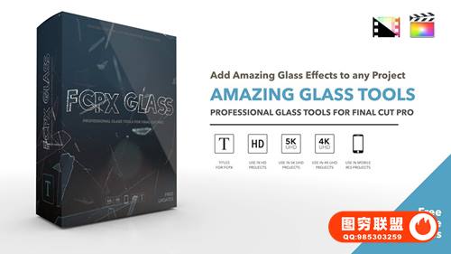 FCPX Glass 插件 这是一套非常强大的玻璃效果视频特效制作工具,包含了100多种工具和效果预设,可制作各式各样的玻璃反射、图形叠加、棱镜等效果,每种预设兼容各种分辨率,并自带控件可进一步的调节。