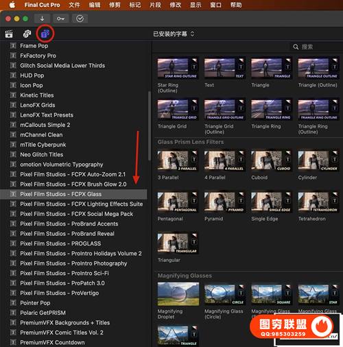 图穷联 » [FCPX插件]专业玻璃棱镜图形叠加反射滤光效果动画特效 FCPX Glass