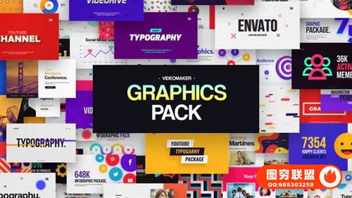 [AE脚本]时尚图形标题排版设计信息图表社交媒体字幕条LOGO动画 Videomaker Graphics Pack