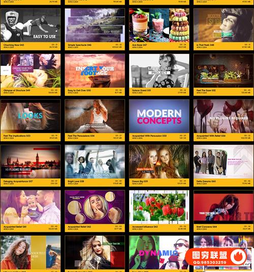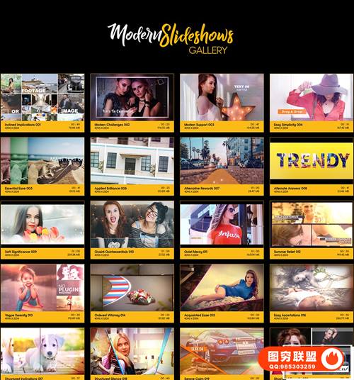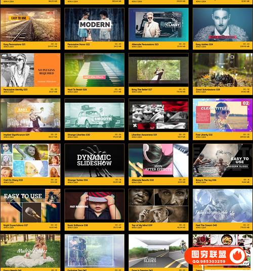 Modern SlideShows包含102个时尚的动画,以2种分辨率提供:4K(4096*2304)和HD高清(1920*1080),方便您自己选择。无需插件,您只需要掌握简单的After Effects知识即可对它们进行编辑,修改,创作。