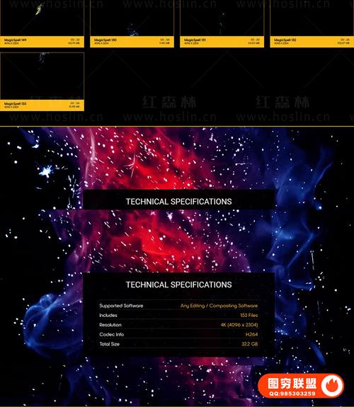 提供153个魔法粒子烟雾火焰特效动画素材4K视频素材 (每个素材还提供了黑白遮罩视频素材) 。在Phantom Flex上以高达1000 FPS的速度拍摄,只需拖到您的视频上,无需任何插件,完美用作特殊效果或背景。适用于VFX特效合成、画面叠加或背景中使用;增强画面观赏性。分辨率:4096*2304,4K高清;无透明通道(可修改混合模式去黑底透明叠加使用)。