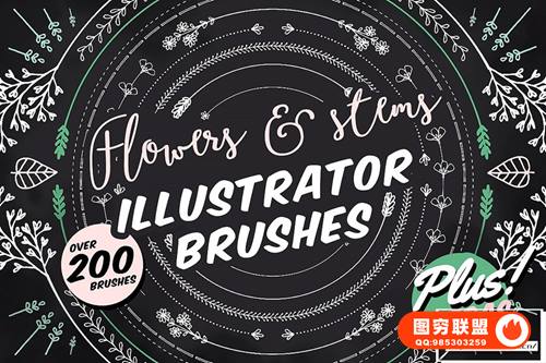 图穷联 » [矢量笔刷]200多个花朵藤蔓心形和植物元素海报婚礼请柬邀请函装饰元素Illustrato