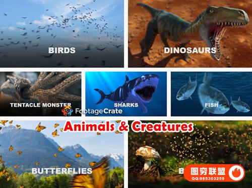 图穷联 » [4K视频素材]124个恐龙鸟蛇鲨鱼蝴蝶昆虫等动物活动视频素材(有透明通道) Produ