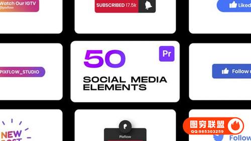 图穷联 » [PR脚本]92个社交媒体视频网站点赞订阅关注图形元素动画 Social Elements