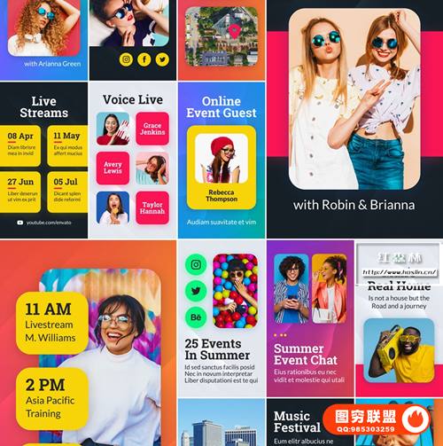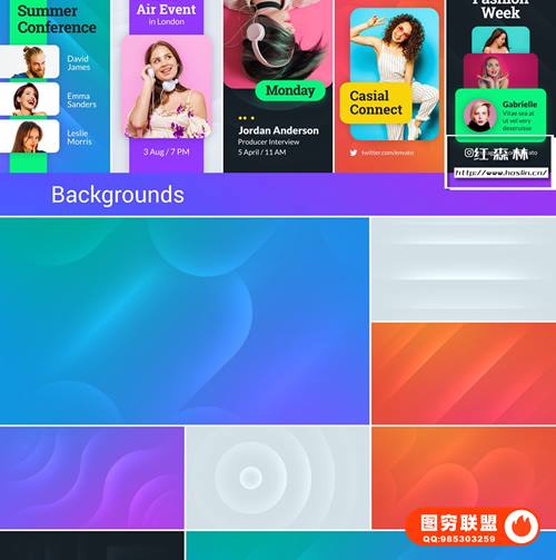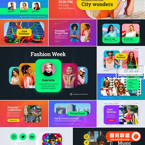 图穷联 » [AE模板]150个扁平化彩色图形节目预告导视社交媒体宣传介绍动画 Wave Broadc