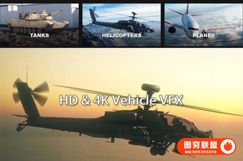 [4K视频素材]94个坦克武装直升机战斗开火客机飞行警示光效动画4K视频素材含透明通道 HD & 4K Vehicle VFX