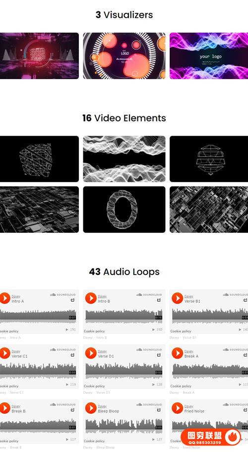 关于该项目的详细信息:有八个可自定义的反应器,可以连接到任何 After Effects 参数。您不需要理解使它们起作用的复杂数学和魔法……您所要做的就是选择一个属性并按下响应按钮。项目包含3个展示合成,16个视频元素,和43个声音素材。