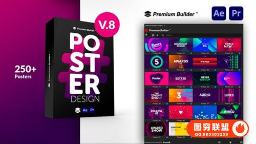 [PR/AE脚本模板]256个时尚彩色图形文字标题排版广告海报设计宣传动画 Posters Pack V8