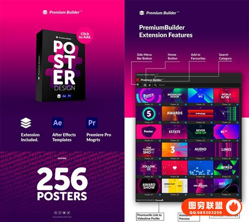 图穷联 » [PR/AE脚本模板]256个时尚彩色图形文字标题排版广告海报设计宣传动画 Posters