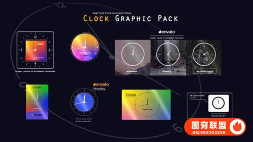 图穷联 » [AE模板]7种独特实用钟表计时动画可修改颜色快速渲染 Real Time Clock A