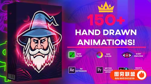 Ultimate 150 Animations Mega Pack 素材包提供150多个手绘动画,拖放到任何编辑软件中即可使用,还提供了有透明通道的.MOV视频素材,AE脚本和PR预设。