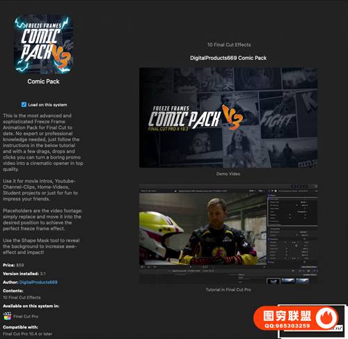 20组炫酷冻结帧定格效果电影预告片FCPX模板 Comic Pack V3 这是一套很流行的画面定格,强调部分画面突出的冻结帧制作效果插件,非常适合电影预告片的制作,此为新版 pack3,包含了20组预设(每个模板有2个预设样式styleA和styleB),原生支持M1,轻松几步就可制作完成炫酷大片,使用简单,包含视频演示教程。