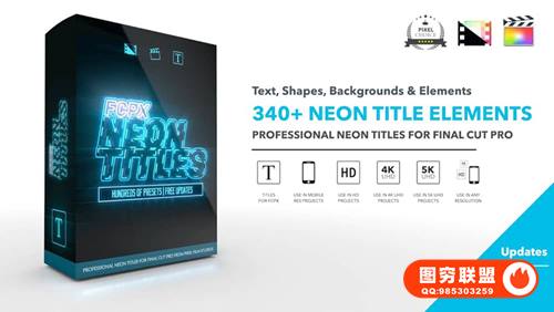 图穷联 » [FCPX插件]341组霓虹灯发光赛博朋克效果文字标题背景动画预设 Neon Titles