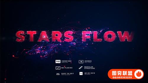 图穷联 » [AE模板]漂亮唯美五角星粒子线条文字大标题展示介绍开场片头动画 Stars Flow E