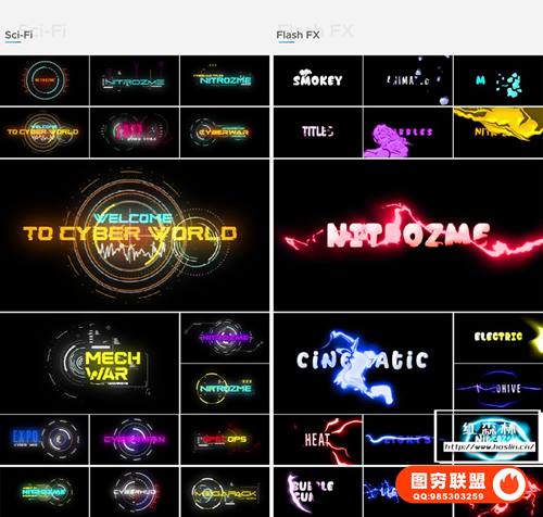 图穷联 » [PR模板]200种科技复古卡通赛博朋克电流霓虹发光酷炫文字标题动画 Motion Tit