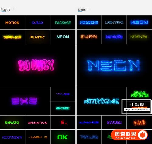 AE版本:[AE脚本]200种科技复古卡通赛博朋克电流霓虹发光酷炫文字标题动画 Motion Titles Library – Animated Text Package