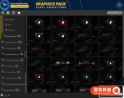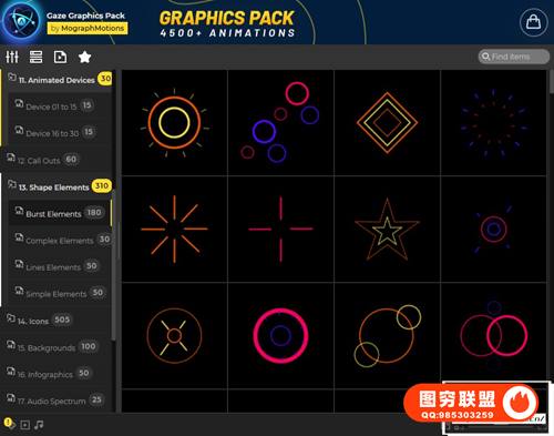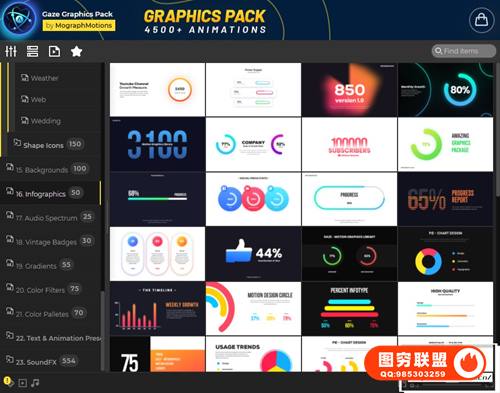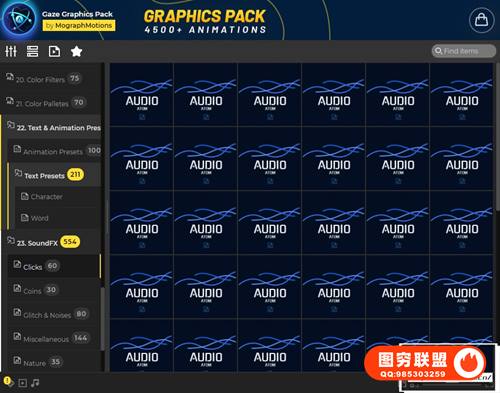 Gaze图形库是唯一包含4500多个即用型元素和预设的设置和效果工具包,只需单击几下即可将您的内容变成杰作。为了获得更直观、更快速的体验,此图形库还附带了AtomX扩展,通过AtomX脚本调用预设,可视化预览,直接使用于时间线。该扩展程序使用起来非常简单,并且由于该工具包包含大量元素和预设,因此AtomX扩展程序使为正确的工作找到正确的资产变得非常简单。