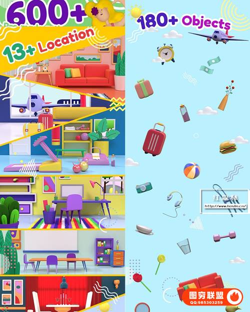 图穷联 » [AE脚本/模板]600种MG三维卡通有趣人物场景图形介绍展示动画包 Briskland