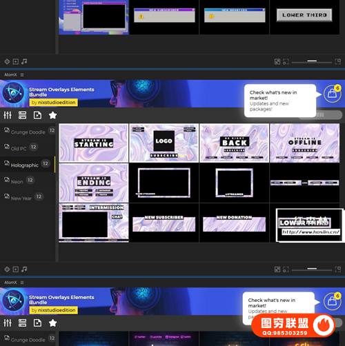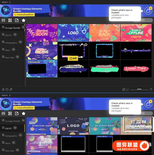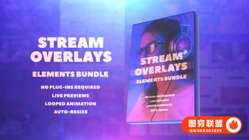 After Effects 的 Stream Overlays Elements Bundle 是一套很棒的预设工具,可以将您的实时流设计提升到一个新的水平。有60多个场景和元素可供使用!使用AtomX脚本实时预览所有视觉动画、自定义文本和颜色而不会弄乱图层。