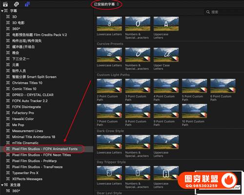图穷联 » [FCPX插件]80种字体动画1000多个字符手写发光粗体样式包支持M1 FCPX Ani