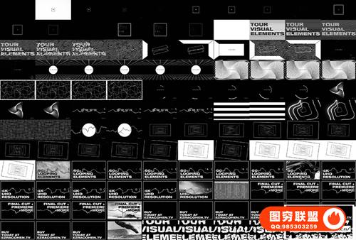 [4K视频素材]69个复古创意黑白图形元素背景循环动画 Ezra Cohen – Tour Visual Elements V1