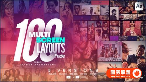 [AE模板]100种视频分屏多画面动态组合效果 100 Multi-Screen Layouts Fade