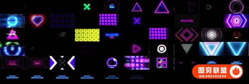 图穷联 » [4K视频素材]72组赛博朋克霓虹发光图形故障闪烁循环动画 Neon Glitch Sha