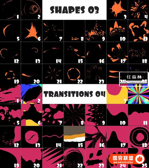 图穷联 » [AE模板/4K视频素材]100个能量电流液体飞溅转场MG动画图形元素包 Animatio