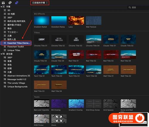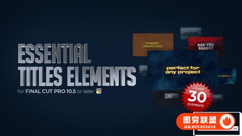 [FCPX插件]32个史诗震撼三维实用文字标题电影片头元素动画 Essential Titles Elements