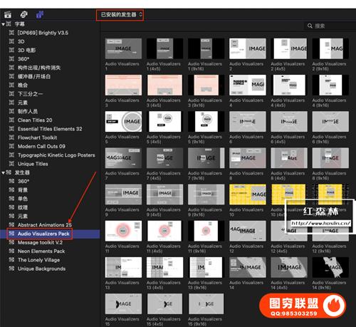 图穷联 » [FCPX插件]45个音频可视化封面图形包装展示动画 Audio Visualizers