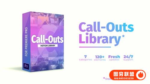 使用 Call-Outs Library 可以帮助用户使他们的视频更加成功,只需几个简单的步骤即可进行编辑。添加您的素材,更改颜色和文本,仅此而已!超过120种独特的动画品,即使是初学者也很容易使用。包含所有动画的 HTML 和 GIF 预览,快速渲染,适用于图像或视频,无需插件。包括两个目标点版本(右和左),分辨率 – 4K、2K、1080。适用于 Premiere Pro 的所有语言和任何字体,包含视频教程。