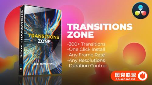 [达芬奇模板]300种缩放翻转平移抖动故障变形扭曲图形分割转场预设 Transition Zone