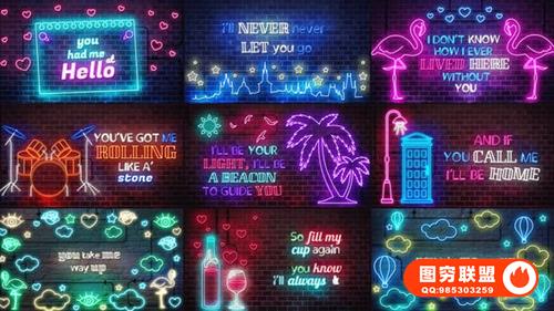 图穷联 » [AE模板]创意时尚霓虹发光图形文字歌词模板动画 Neon Lyrics Template