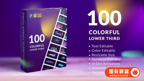 100组时尚炫彩渐变图形文字标题字幕条动画具有色彩丰富且现代的干净设计,您还可以真正完全自定义它以适合您的任何类型的项目,因为该字幕条动画具有许多功能,例如颜色可编辑、持续时间可编辑、文本可编辑、大小可编辑。支持4K,包含视频教程。