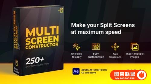 一个终极分屏动画预设包,包含250多个高质量且易于使用的分割屏幕视频分屏模板,具有大量自定义选项,另外还有一个强大的脚本,可帮助您将它们制作更多效果。