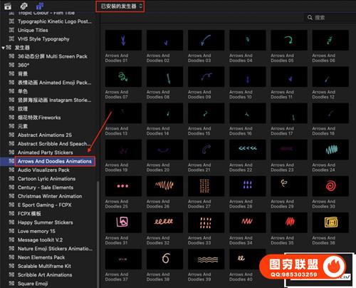 图穷联 » [FCPX插件]40个手绘线条涂鸦箭头图形动画 Arrows And Doodles An