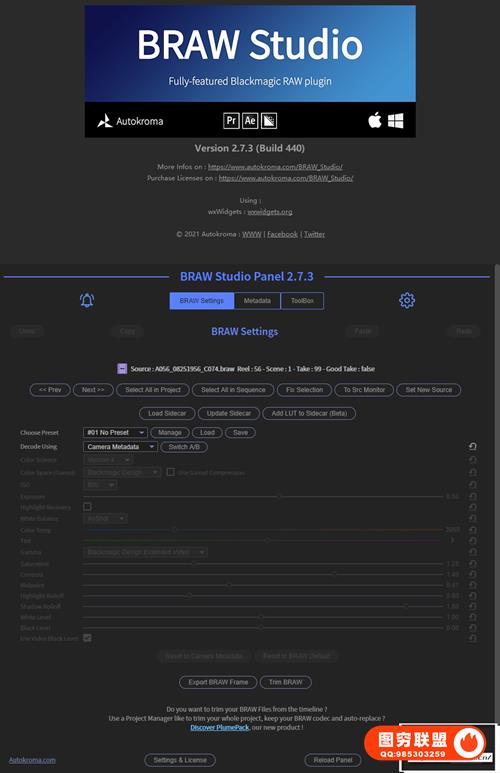 [AE/PR/AME插件]将Blackmagic RAW格式视频素材直接导入编辑 BRAW Studio v2.7.3 Win版