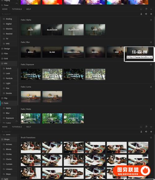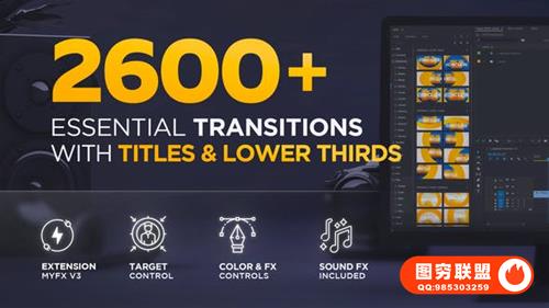 [PR脚本]2600种模糊光效故障扭曲水墨笔刷淡入淡出图形翻转视差分割转场预设 Essential Transitions For PR