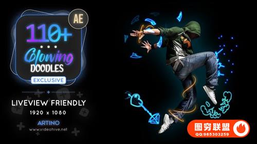 图穷联 » [AE脚本]110种手绘卡通涂鸦发光线条图形动画 Glowing Doodles Pack